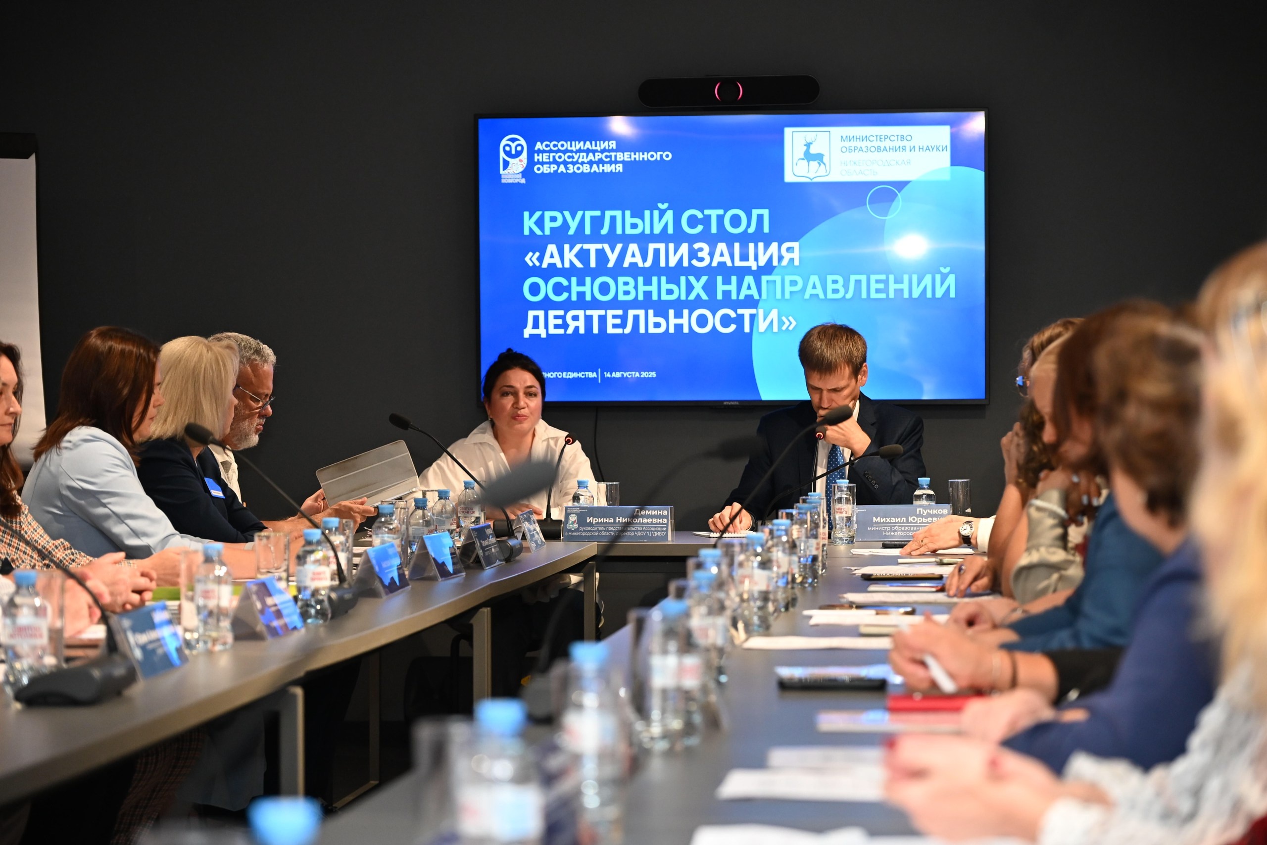 14 августа 2025 года на площадке Дома народного единства прошел круглый стол с участием министра образования и науки Нижегородской области Пучкова Михаила Юрьевича и руководителей негосударственных образовательных организаций региона, входящих в состав Нижегородского регионального отделения Ассоциации негосударственного образования России.