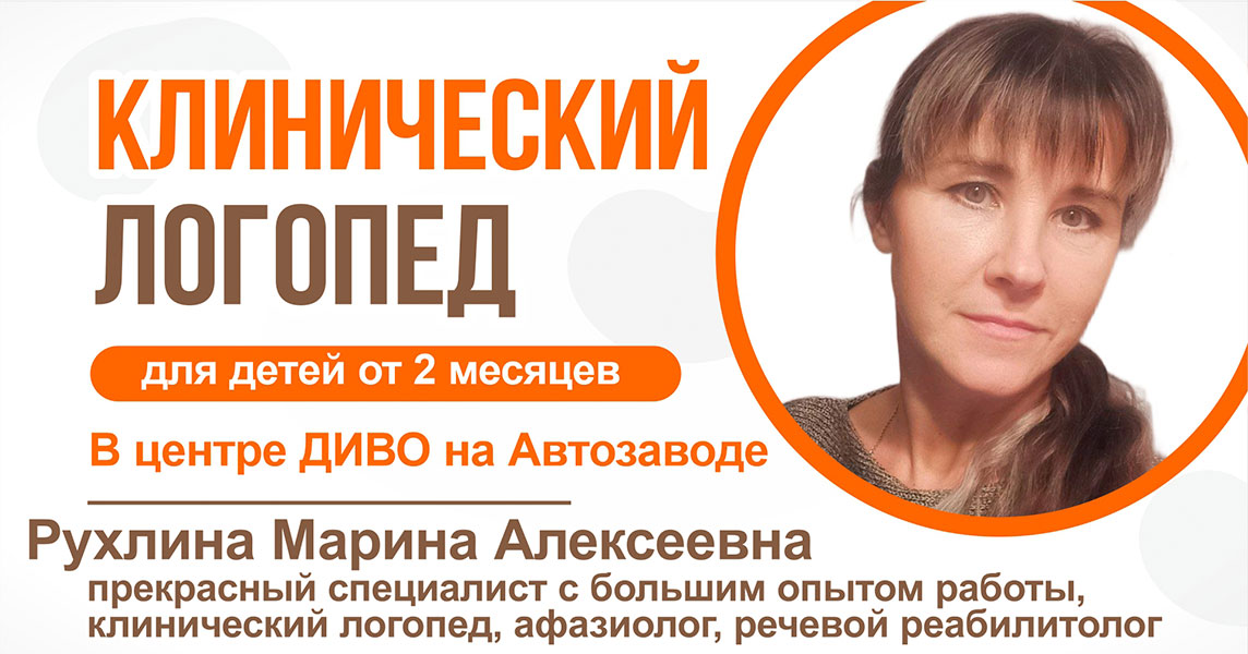 В центре «ДИВО» на ул.Челюскинцев, 16а ведёт приём детей с 2-х месяцев прекрасный специалист с большим опытом работы, клинический логопед, афазиолог, речевой реабилитолог Рухлина Марина Алексеевна.